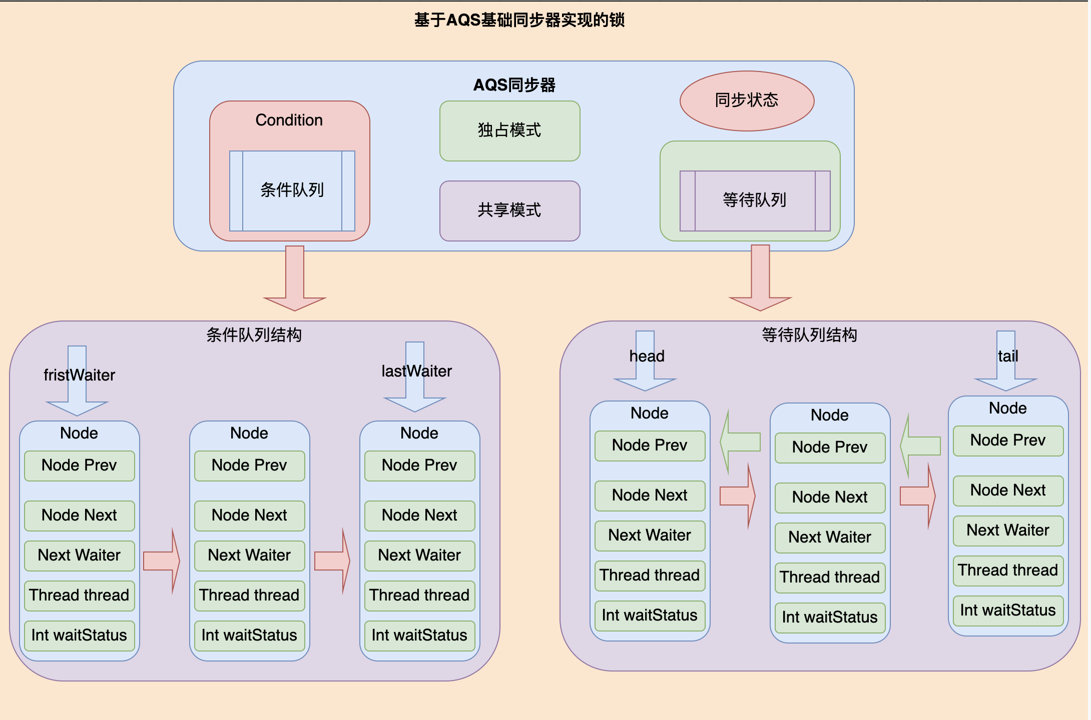JDK的JUC(java.util.concurrent.)包中提供了各种并发工具,但是大部分同步工具的实现基于AbstractQueuedSynchronizer类实现,其内部结构主要如下: