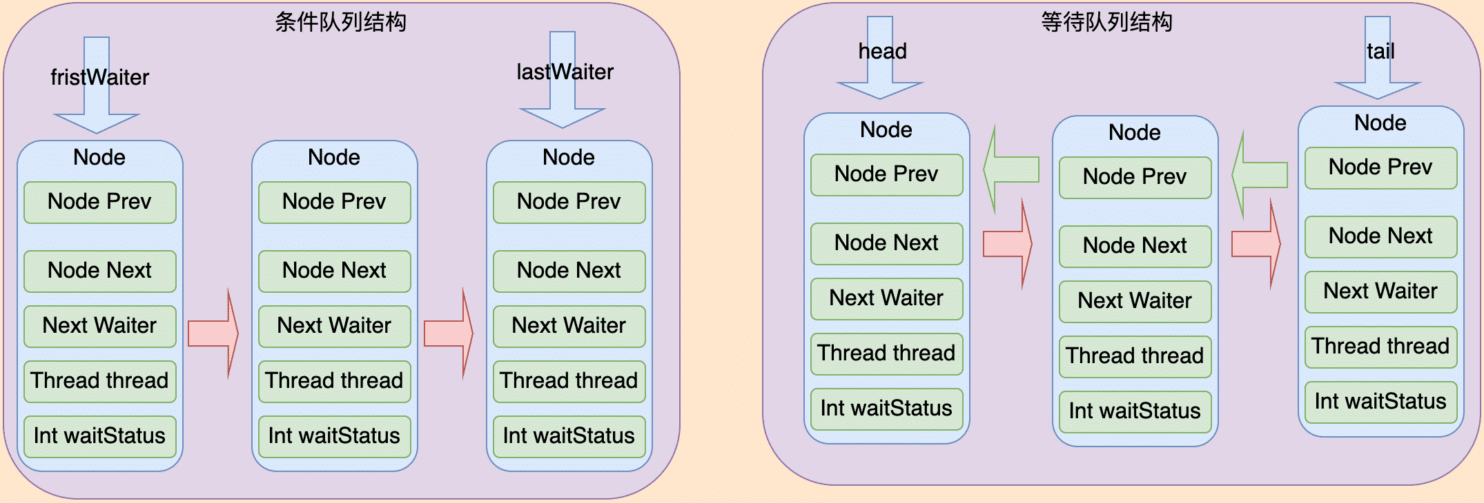 * 等待队列: head-头节点