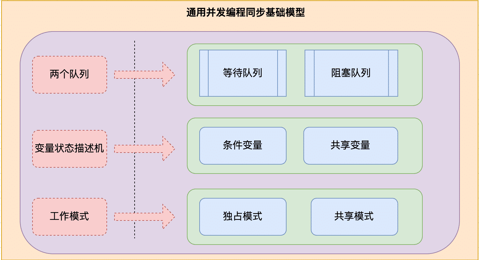 由此可见,我们可以得到一个比较通用的并发同步工具基础模型,大致包含如下几个内容,其中: