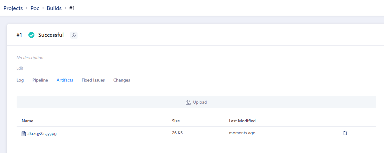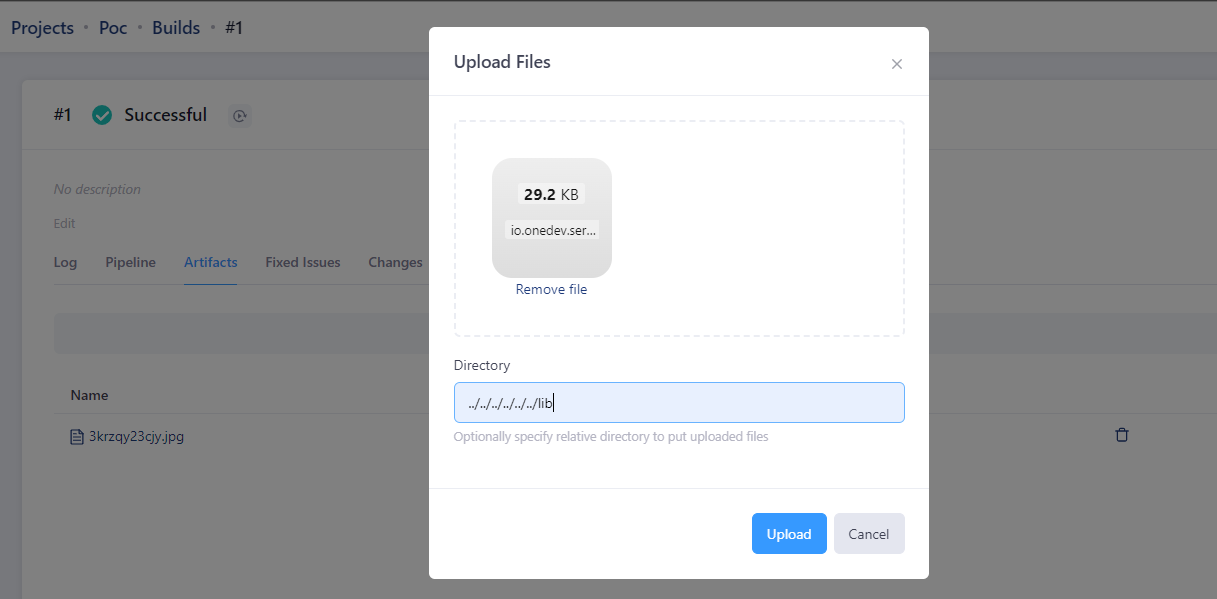 项目管理员可以在 OneDev 的build模块对自己的一个项目进行构建,同时在build模块中提供了手动上传Artifacts功能。