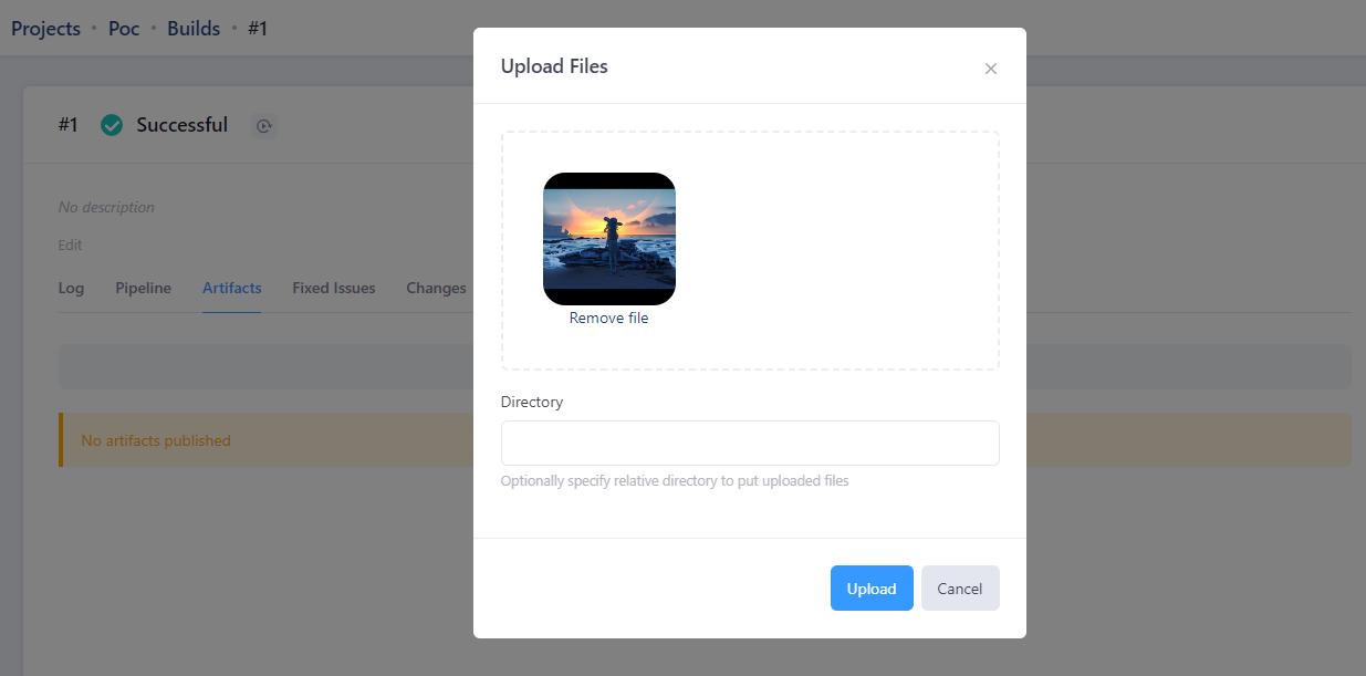 Artifacts时任意选择一张图片进行上传,Directory可以自定义,这里先留空。