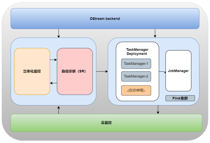 当作业的 Checkpoint 完成后,会通知 ostream backend 然后开始执行Flink计算资源的伸缩