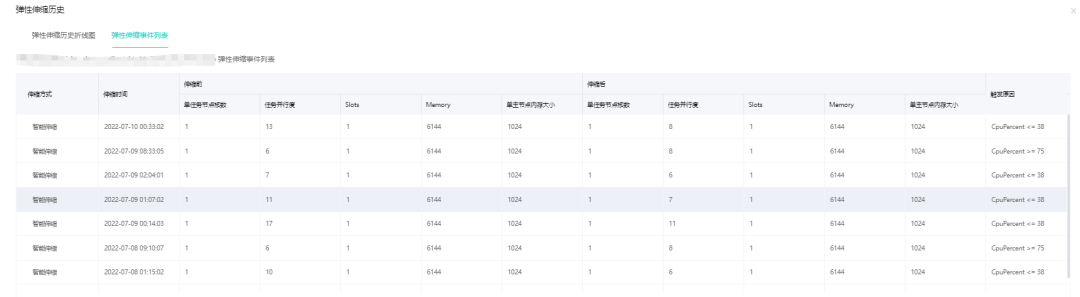 我们记录了每次伸缩的事件,包括时间、触发原因,伸缩前后的资源等,方便平台跟用户跟踪资源的变化和排查问题。