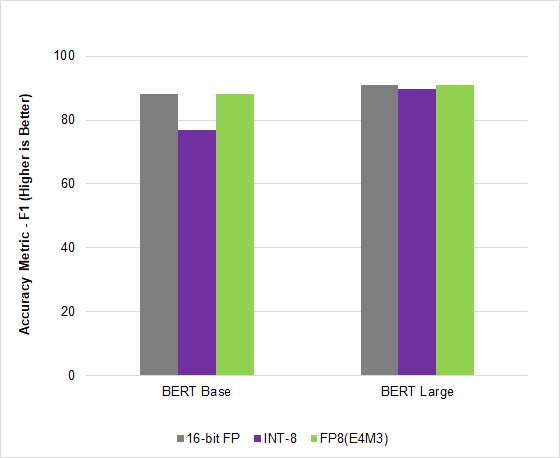 对 FP8 格式的测试显示,在广泛的用例、架构和网络中,精度与 16 位精度相当。变压器、计算机视觉和 GAN 网络的结果都表明,FP8 训练精度与 16 位精度相似,同时提供了显著的加速。