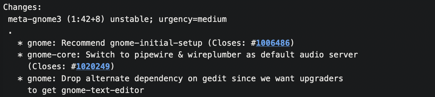 在 9 月中旬的时候,来自 Canonical 的维护者 Jeremy Bicha 就在 Debian Bug 中提交了一个 Switch to PipeWire 的报告,在报告中他表示: