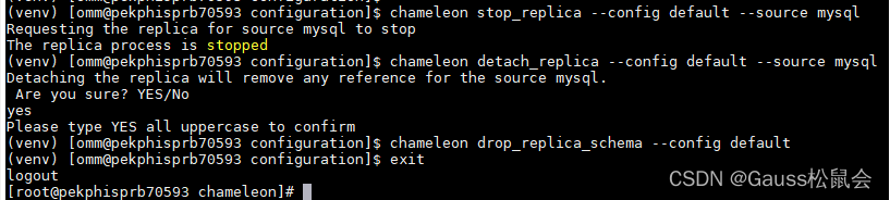 4.结束复制过程及清理资源 chameleon stop_replica --config default --source mysql chameleon detach_replica --config default --source mysql chameleon drop_replica_schema --config default