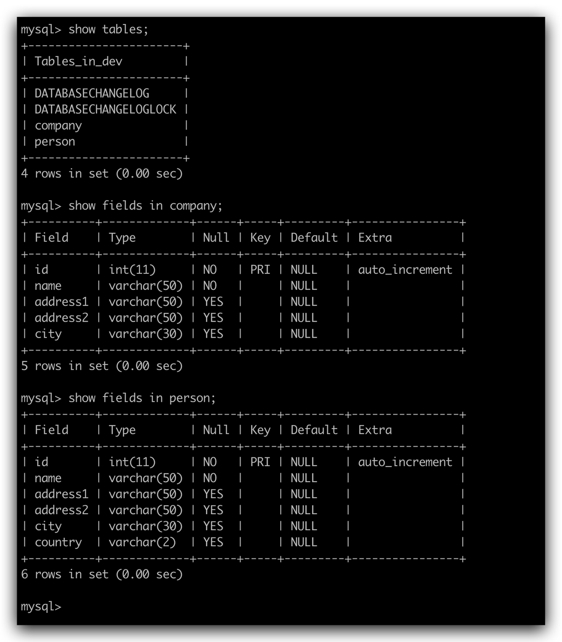 sql-change-liquibase 任务执行完毕后查询数据库中信息如下。