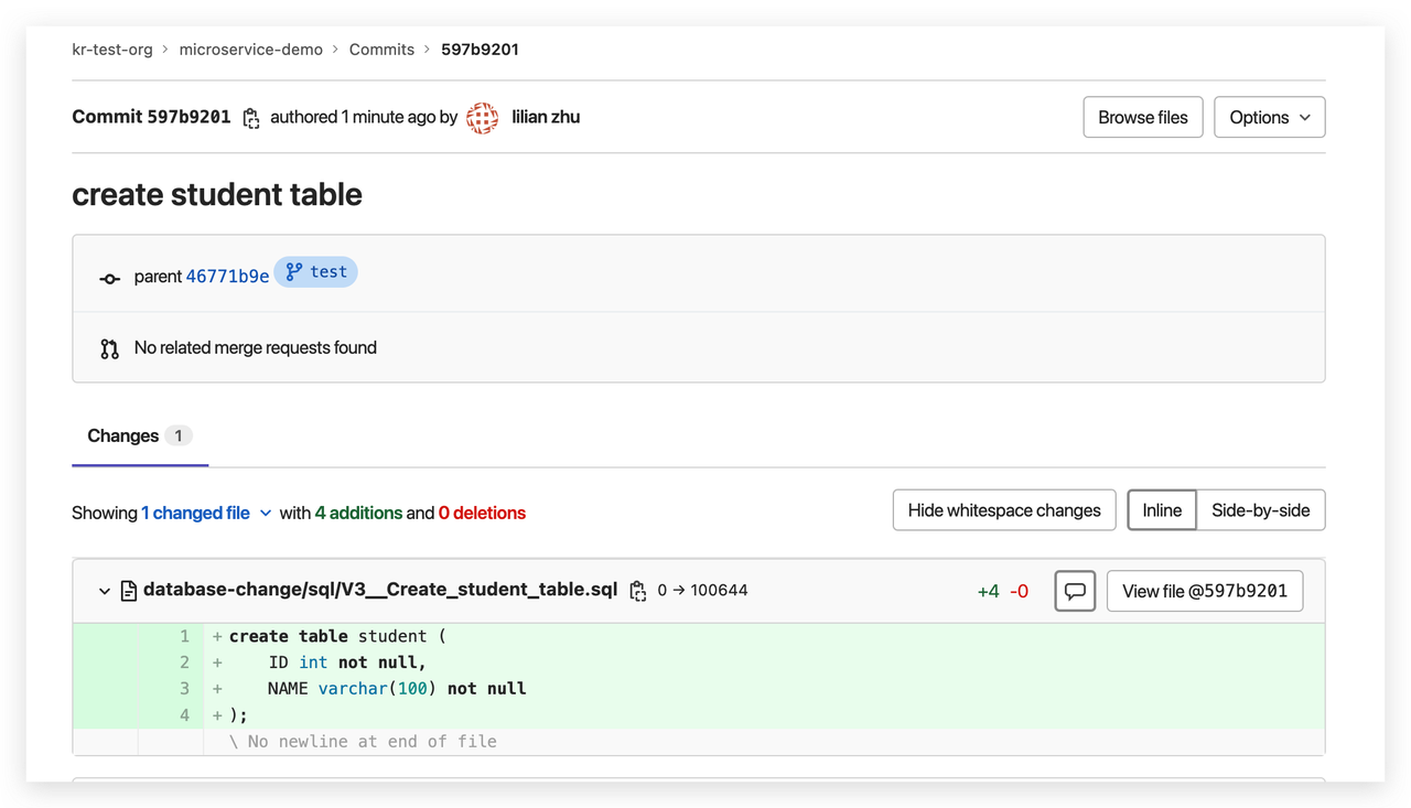 - 准备数据变更相关文件,文件保存在 microservice-demo 项目代码库 中。