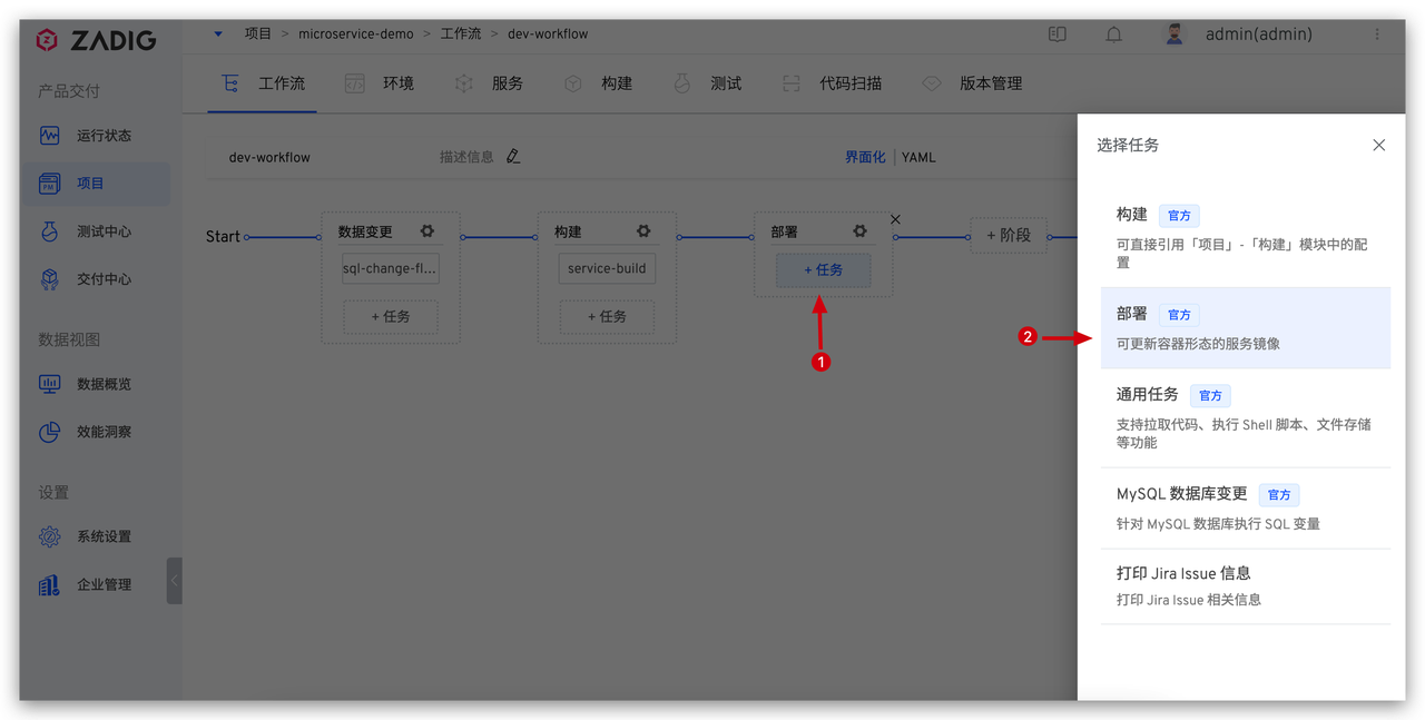 - 运维人员触发 Zadig 工作流针对预发/生产环境进行数据变更和业务发布。