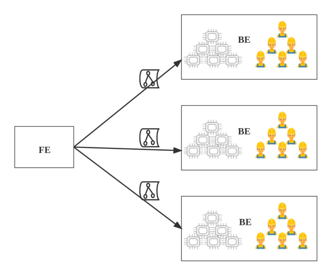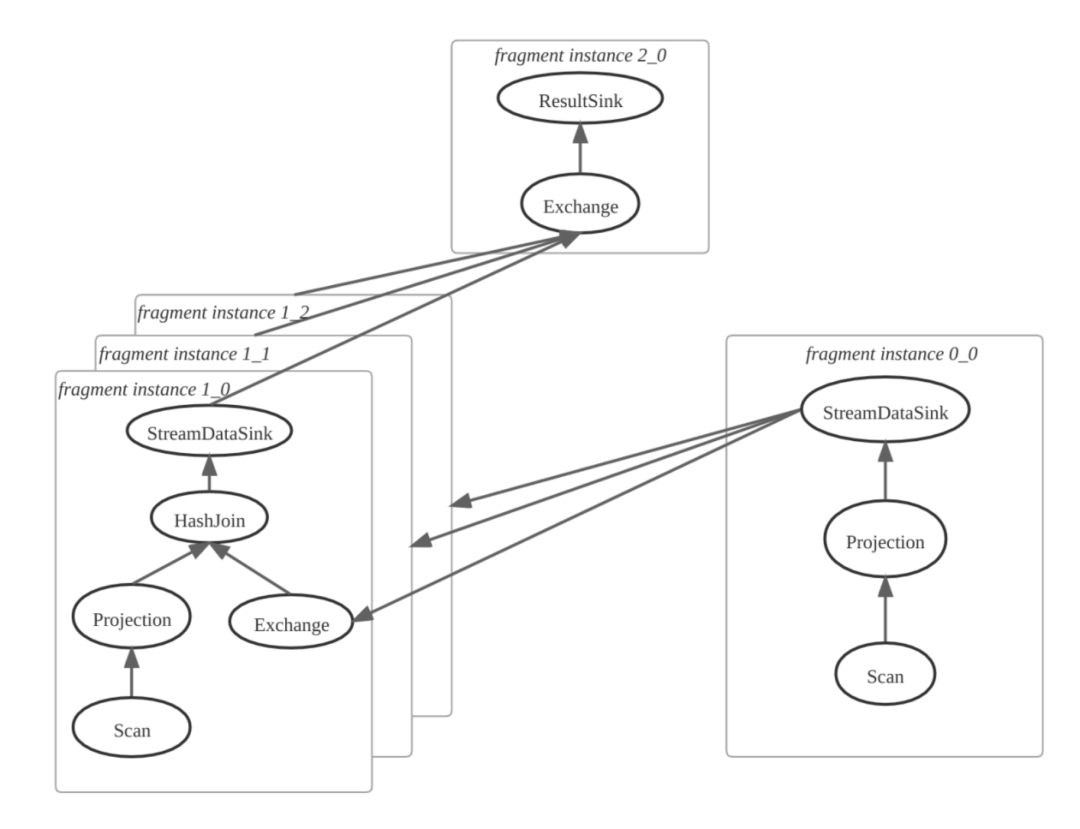 第三步:FE 将所有 Fragment Instance,一次性(all-at-once)投递给 BE,BE 执行 Fragment Instance。
