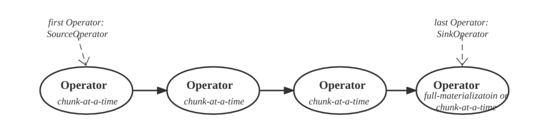 Pipeline 是一组算子构成的链,开始算子为 SourceOperator,末尾算子为 SinkOperator。Pipeline 中间的算子只有一个输入端和输出端。