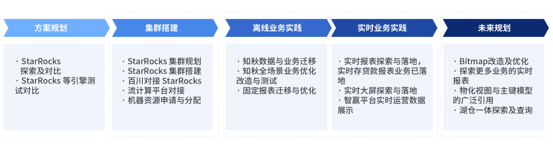 完成选型后,中原银行开始进行OLAP架构改造。此项目分为三个阶段:集群搭建、离线业务实践与实时业务实践。