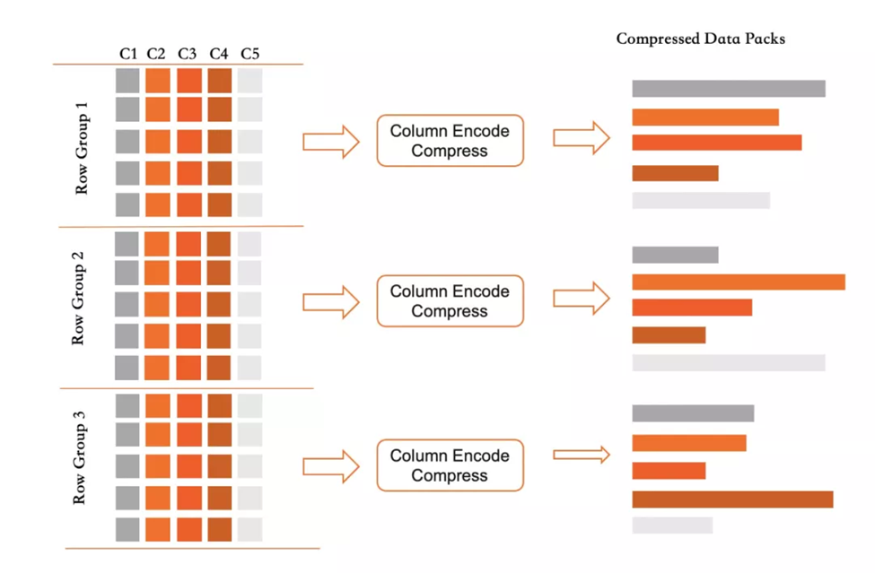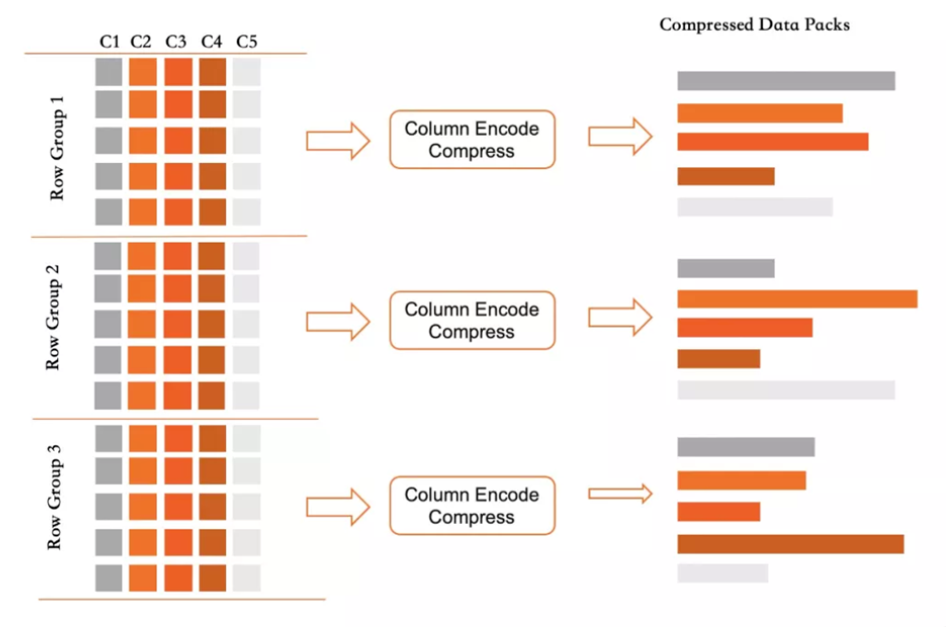 列索引中记录按 RowGroup 进行组织,每个 RowGroup 中不同的列会各自打包形成 DataPack。