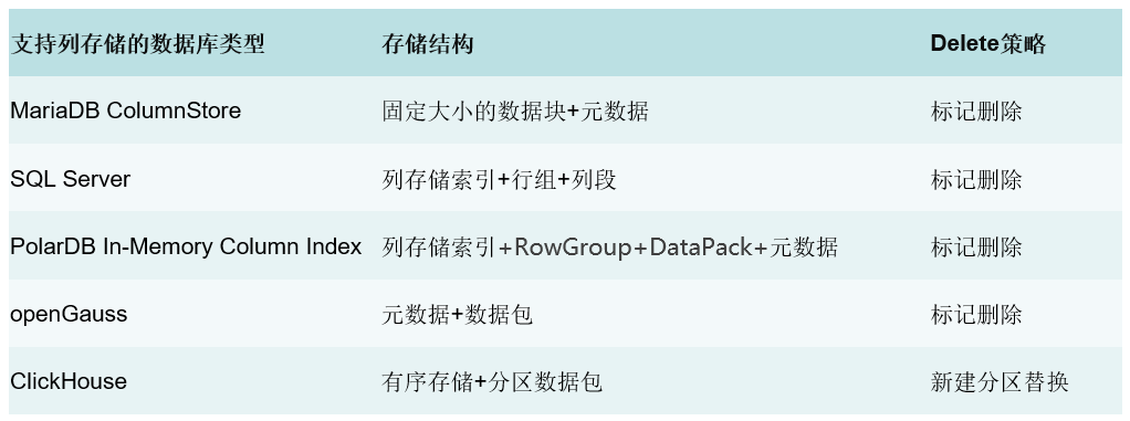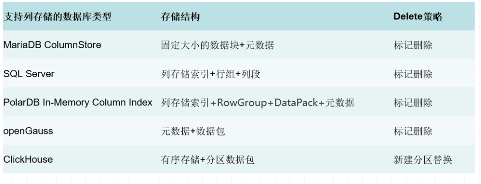 随着用户的呼声越来越多,我们开始对各个有列式存储的数据库进行了一个调研,如下表所示: