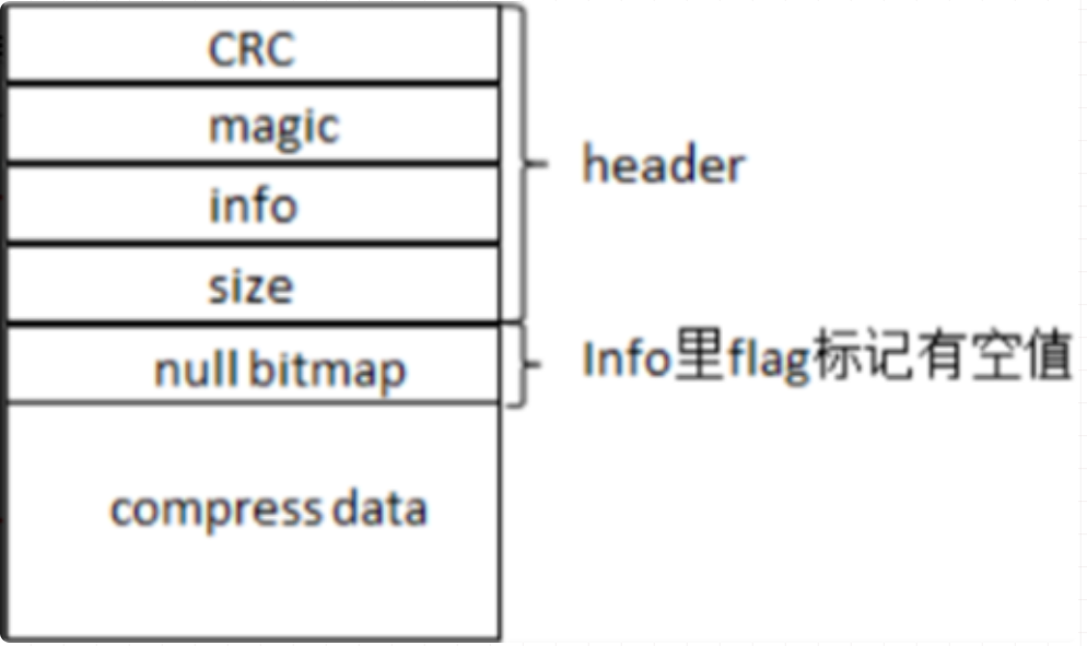 当该 RowGroup 写满之后即冻结,其包含的所有 DataPack 会转为压缩格保存到磁盘上,同时记录每个数据块的统计信息便于过滤。