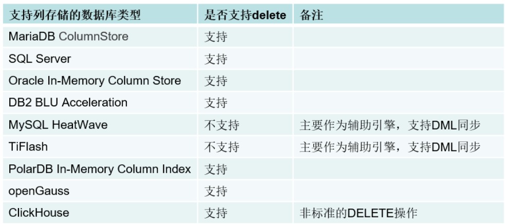 通过分析目前行业内支持列式存储的主流数据库,大部分都是支持的,就算不支持直接 delete,也是支持 DML 同步的,所以 Tianmu 引擎的 delete 功能确实有必要进行开发支持。