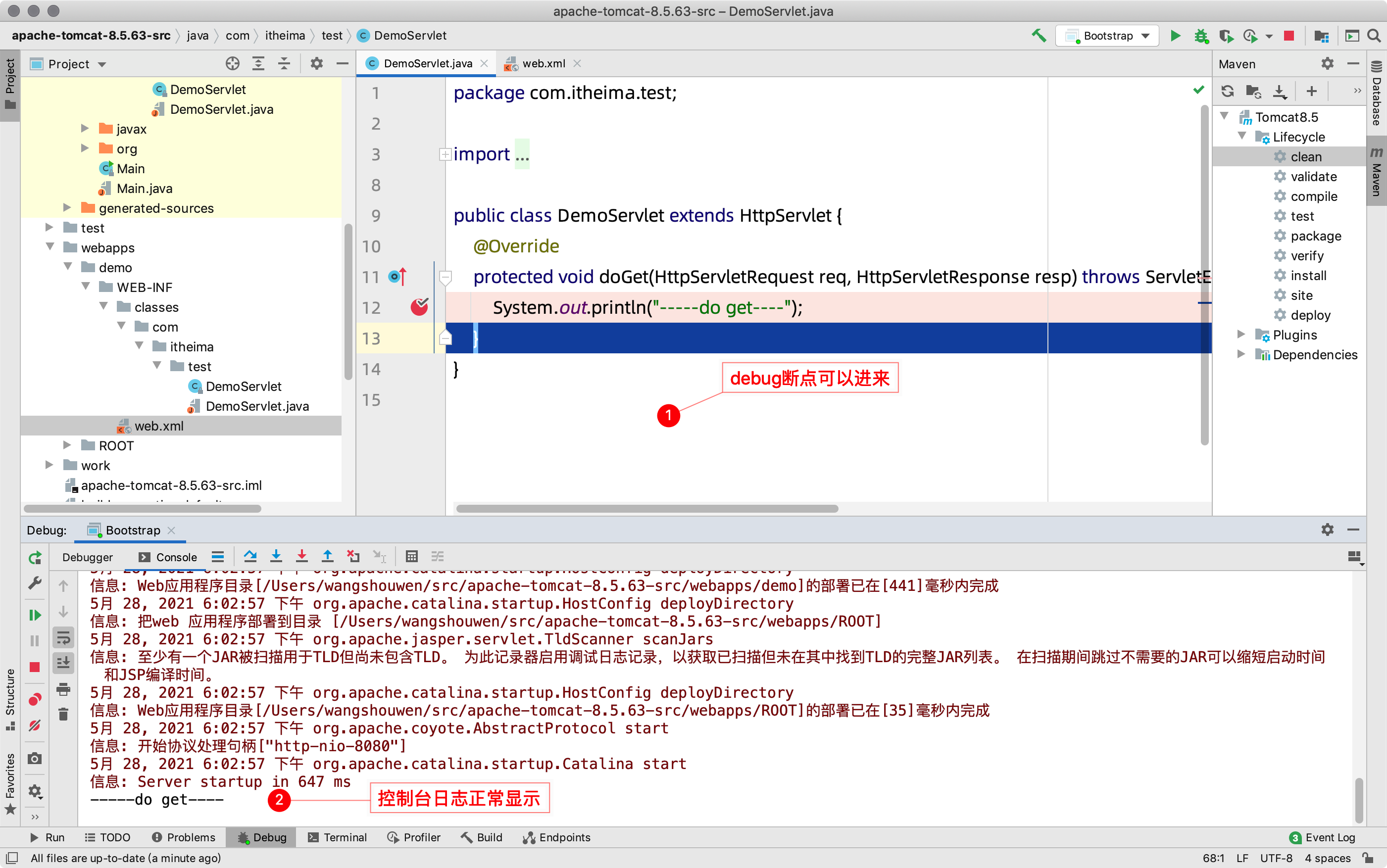debug重启tomcat,访问 http://localhost:8080/demo/test.do