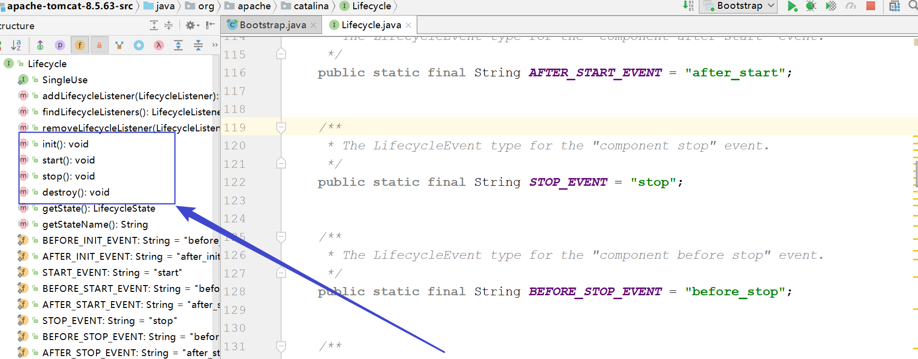 将断点打在 org.apache.catalina.startup.Catalina#start, 下面的 stop() 一行