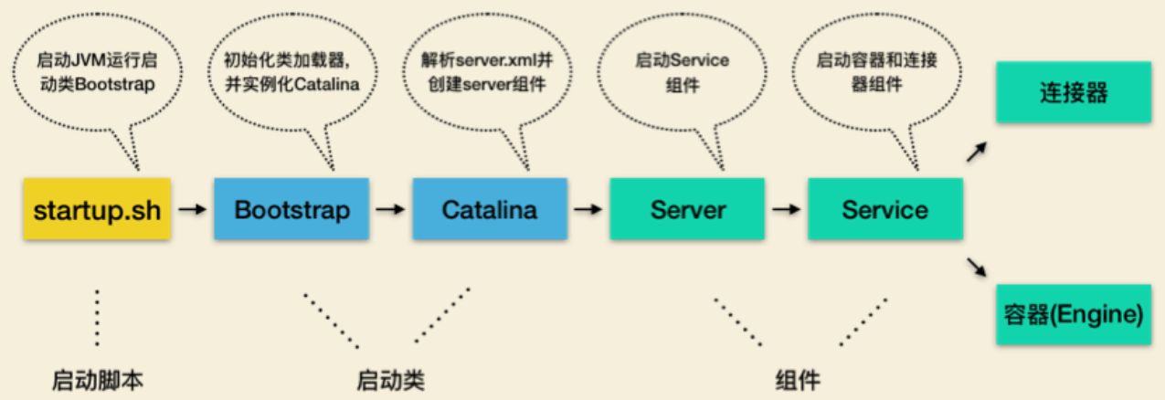 只是把连接器和容器组装起来。连接器与容器之间通过标准的 ServletRequest 和 ServletResponse 通信