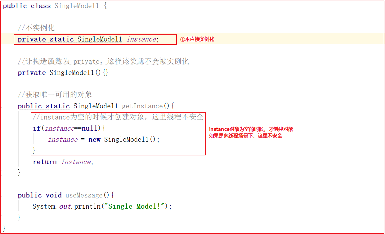 单例模式 涉及到一个单一的类,该类负责创建自己的对象,同时确保只有单个对象被创建。该类还提供了一种访问它唯一对象的方式,其他类可以直接访问该方法获取该对象实例,而不需要实例化该类的对象。