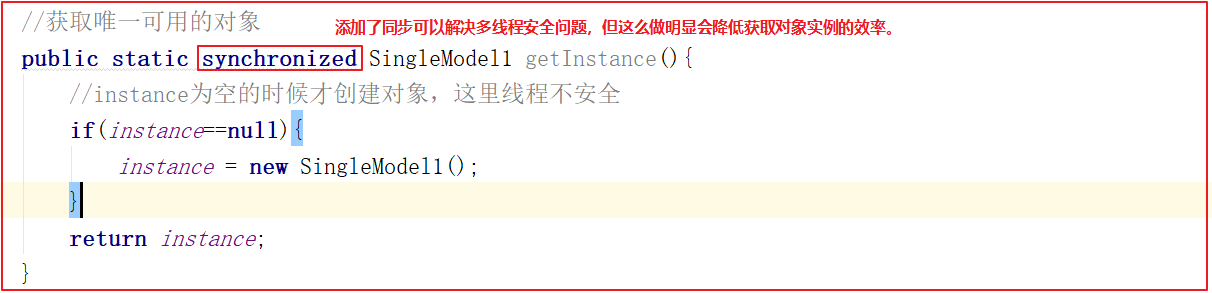单例模式有多种创建方式,刚才创建方式没有特别的问题,但是程序启动就需要创建对象,不管你用不用到对象,都会创建对象,都会消耗一定内存。因此在单例的创建上出现了多种方式。