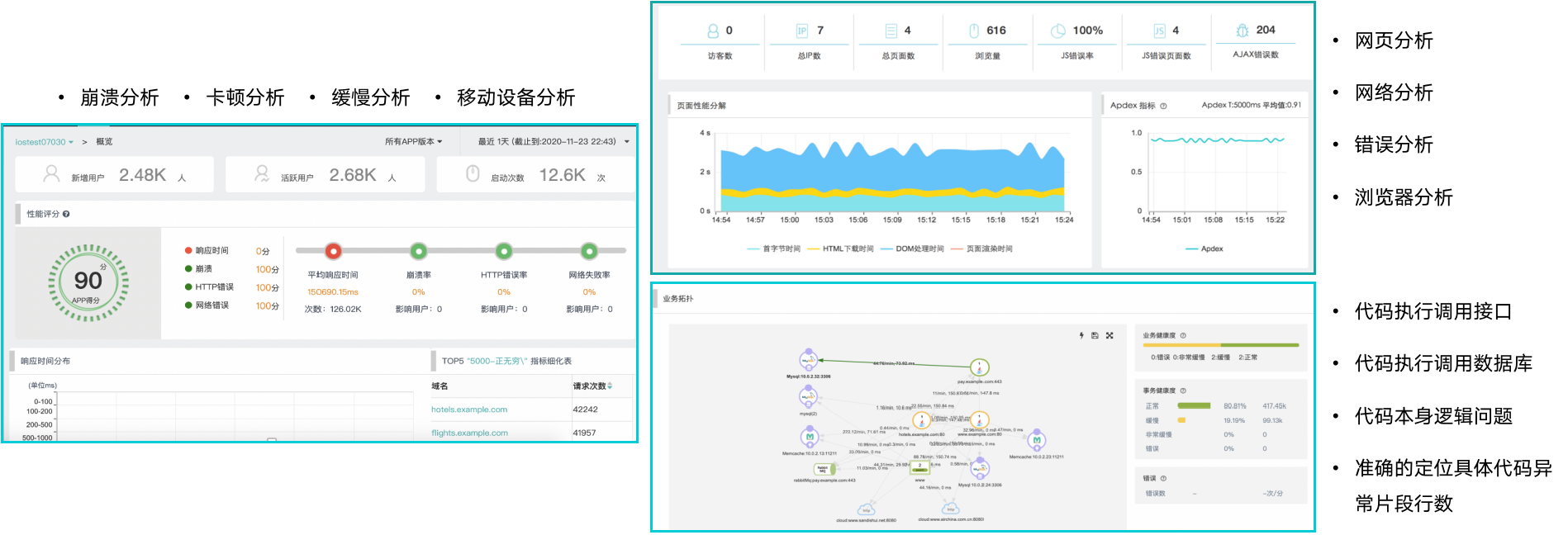 全面:端到端全链路性能发现;用户、应用及业务全覆盖