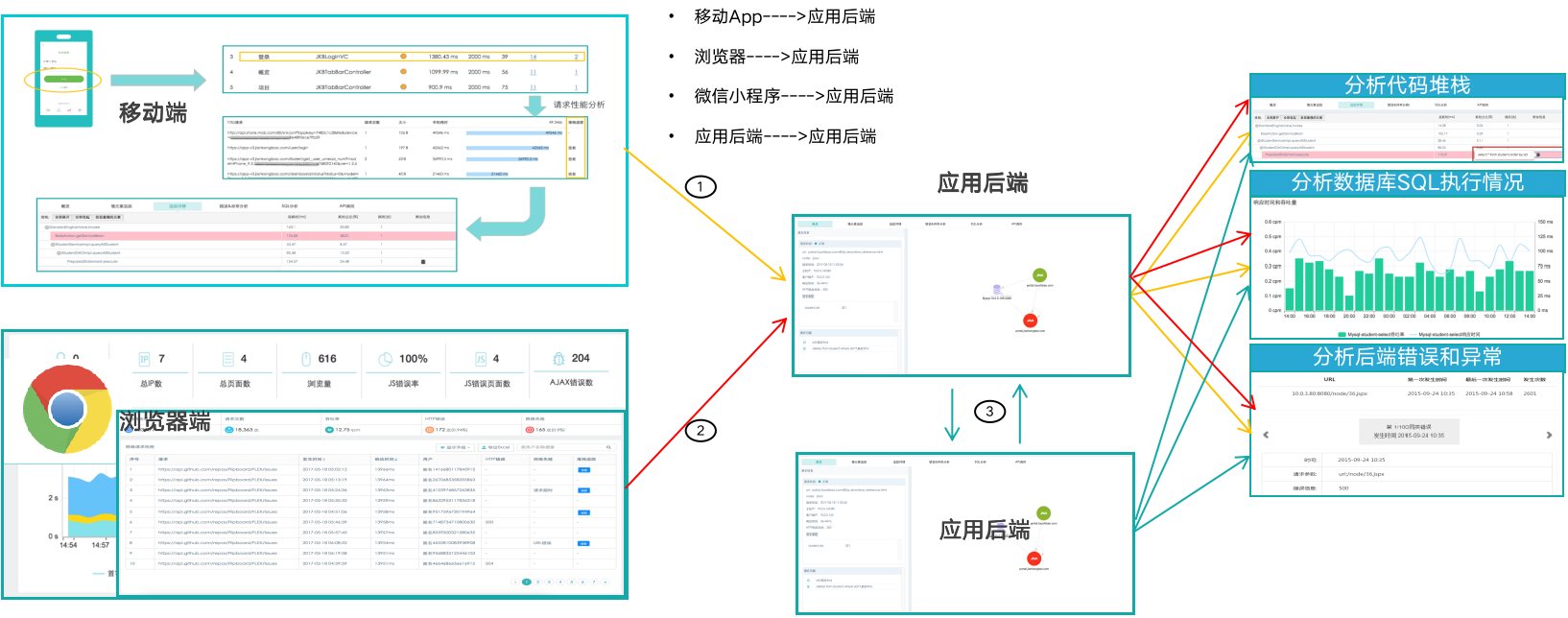 立体化监测-前端到后端关联、业务故障快速定位分析