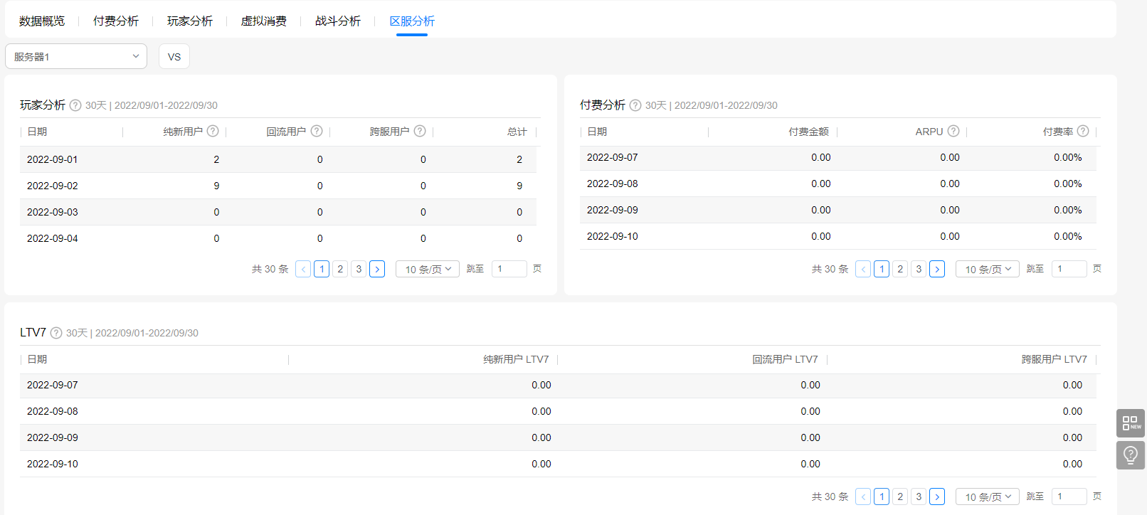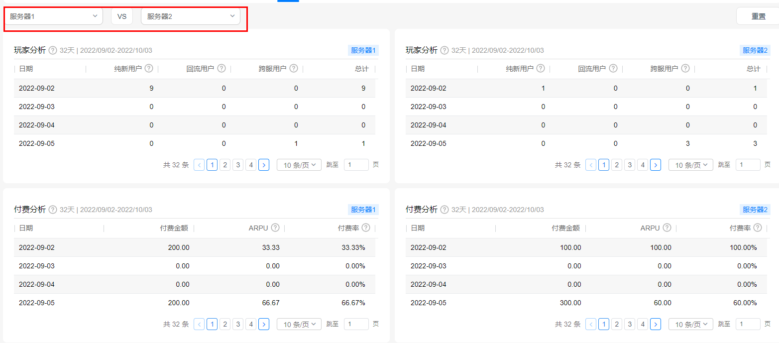 二、支持区服细分,进一步评估游戏内各服务器的玩家表现