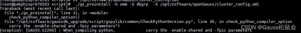 [root@pekphisprb70593 script]# ./gs_preinstall -U omm -G dbgrp -X /opt/software/gaussdb_upgrade/cluster_config.xml
