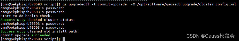gs_upgradectl -t commit-upgrade -X /opt/software/gaussdb_upgrade/cluster_config.xml