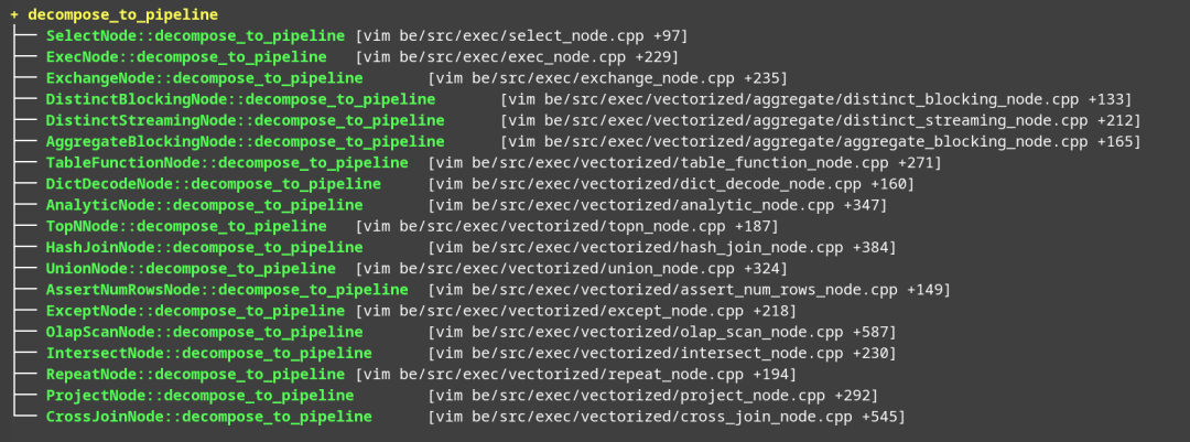 PipelineBuilder::build 主要从执行树 root 节点开始,递归调用 decompose_to_pipeline 函数。