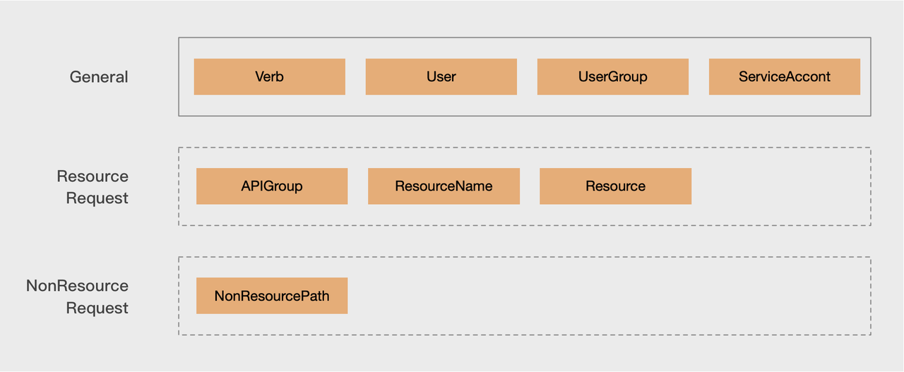 通过 Verb 和 Resource 的结合,我们可以直接匹配到所有的 list pod 的请求