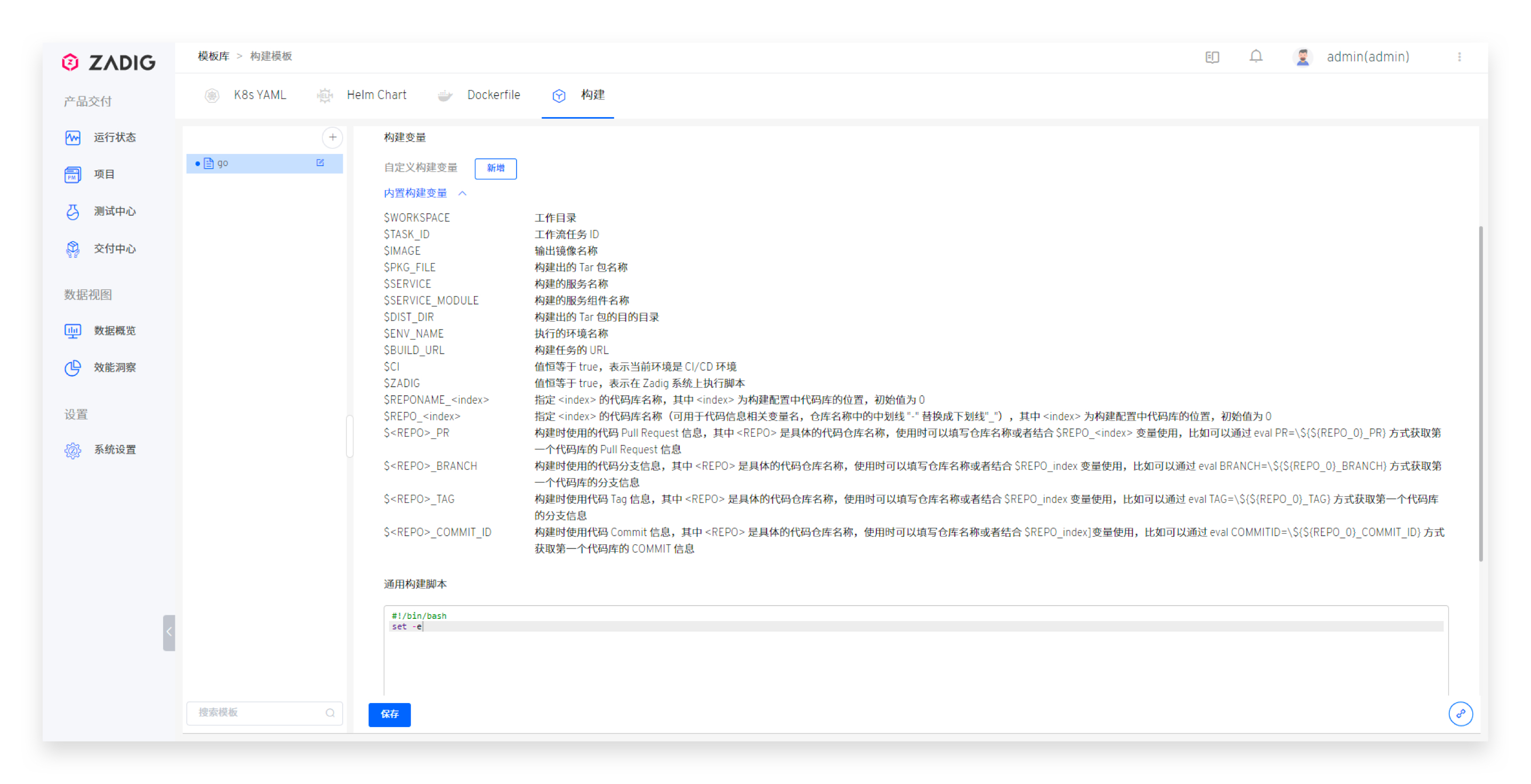 Zadig 有着良好的抽象能力,能够直接优化比较重复的动作,就比如 CI/CD 经常遇到的镜像 Dockerfile, YAML 等,通过抽象成为模板实现配置的统一和规范化管理。