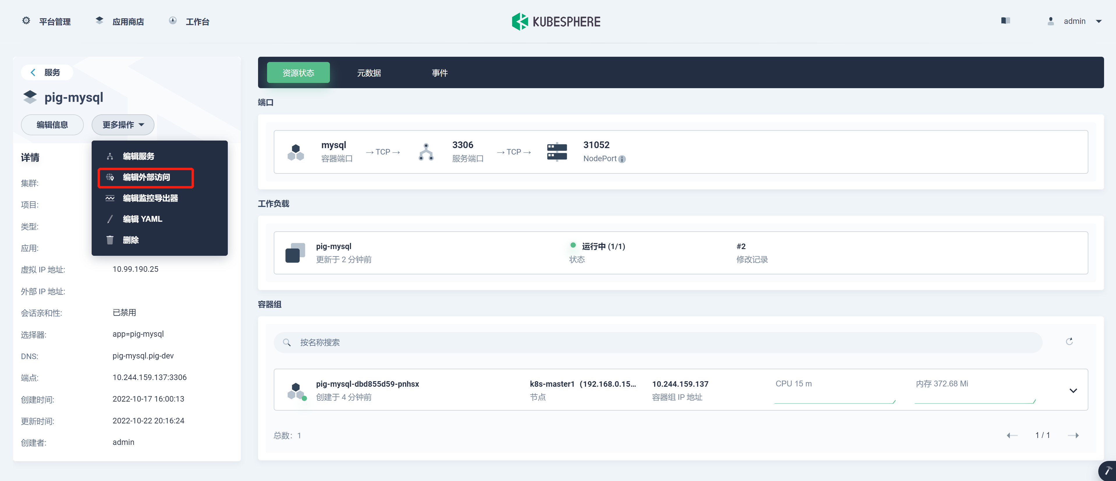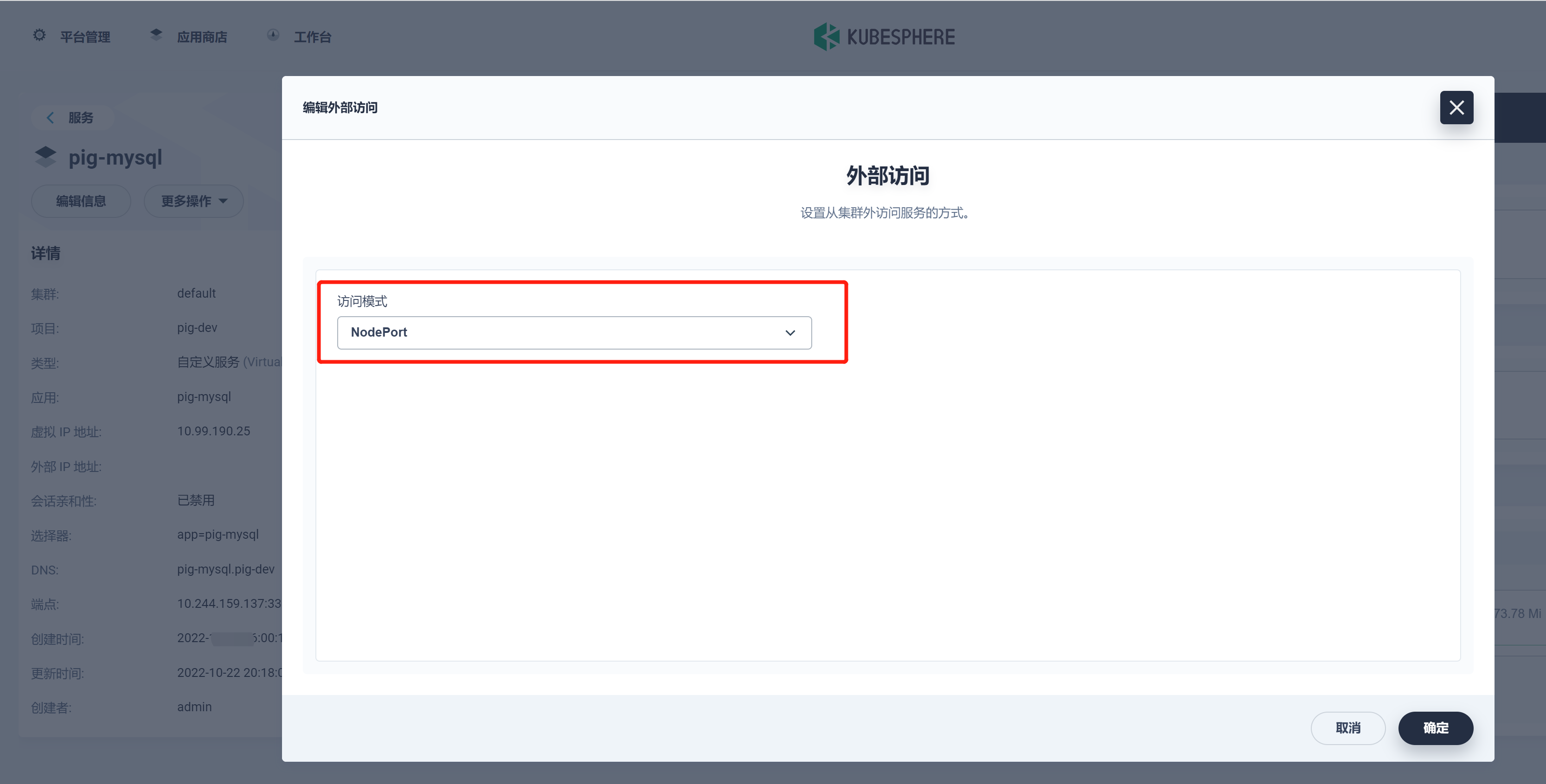 - 进入 pig-mysql 服务,编辑外部访问 , 从而访问 MySQL 导入 pig 的数据: