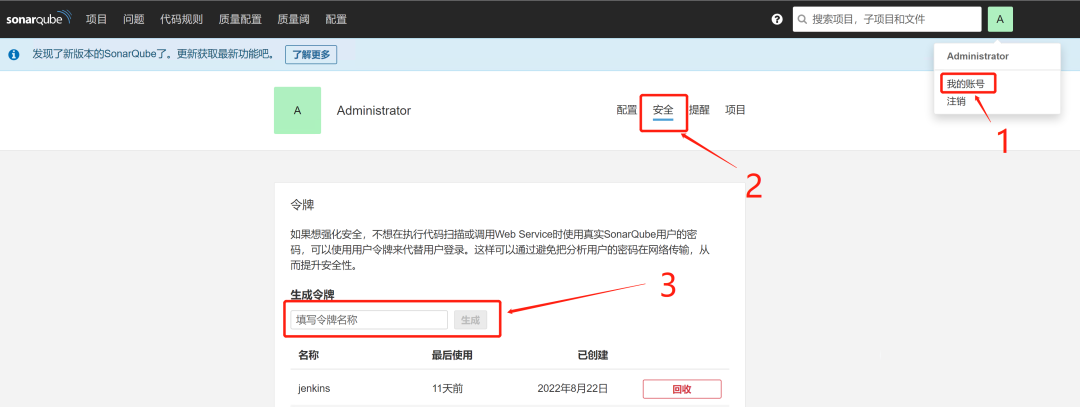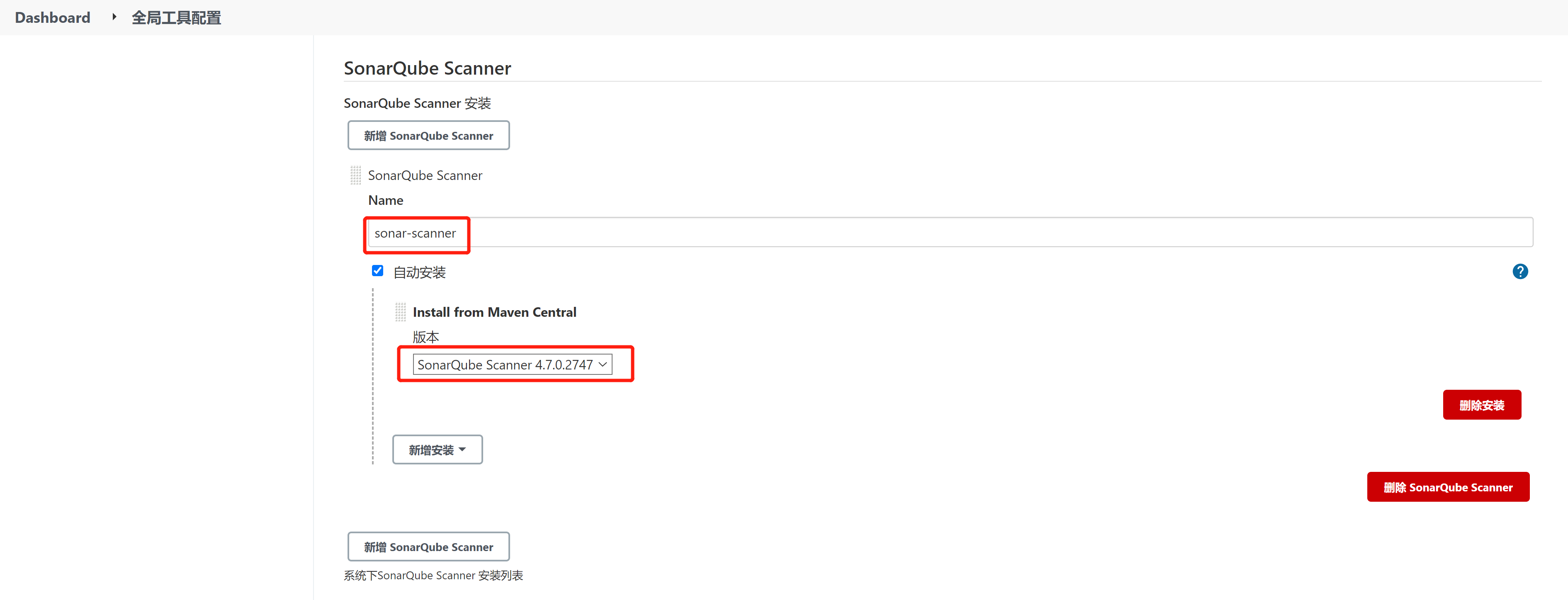注:sonar-scanner 和 sonarqube9.4 名称需和 Jenkins 中配置的一致。
