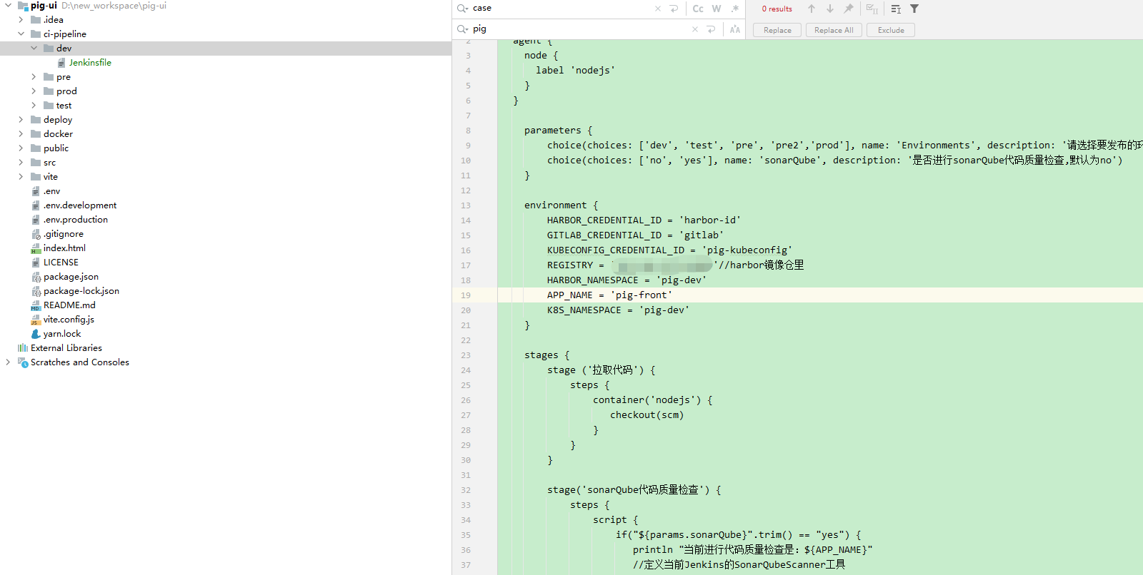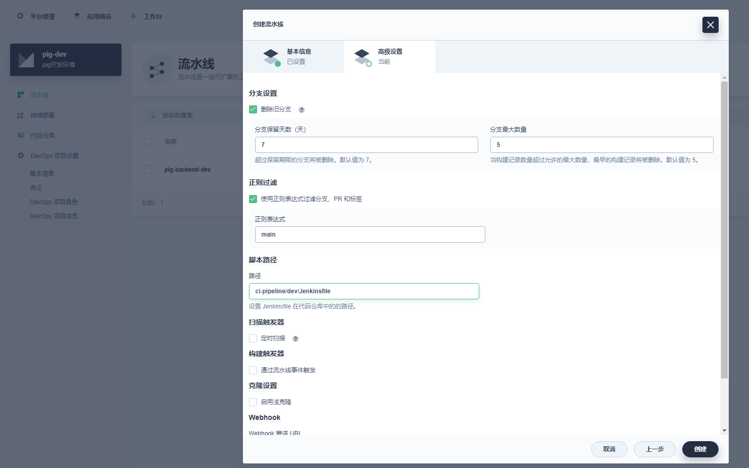 分别创建两条流水线,一条用于构建 Pig 后端 Java 代码,另外一条用于构建基于 Vue 的 Pig-ui 前端代码。