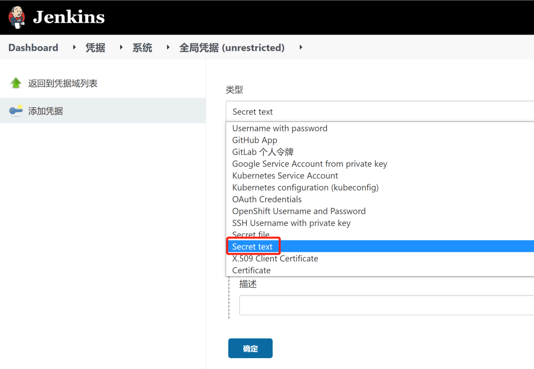 名称自定义,需要和 Jenkinsfile 中的一致即可。