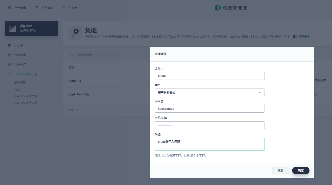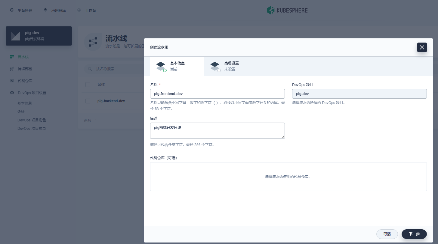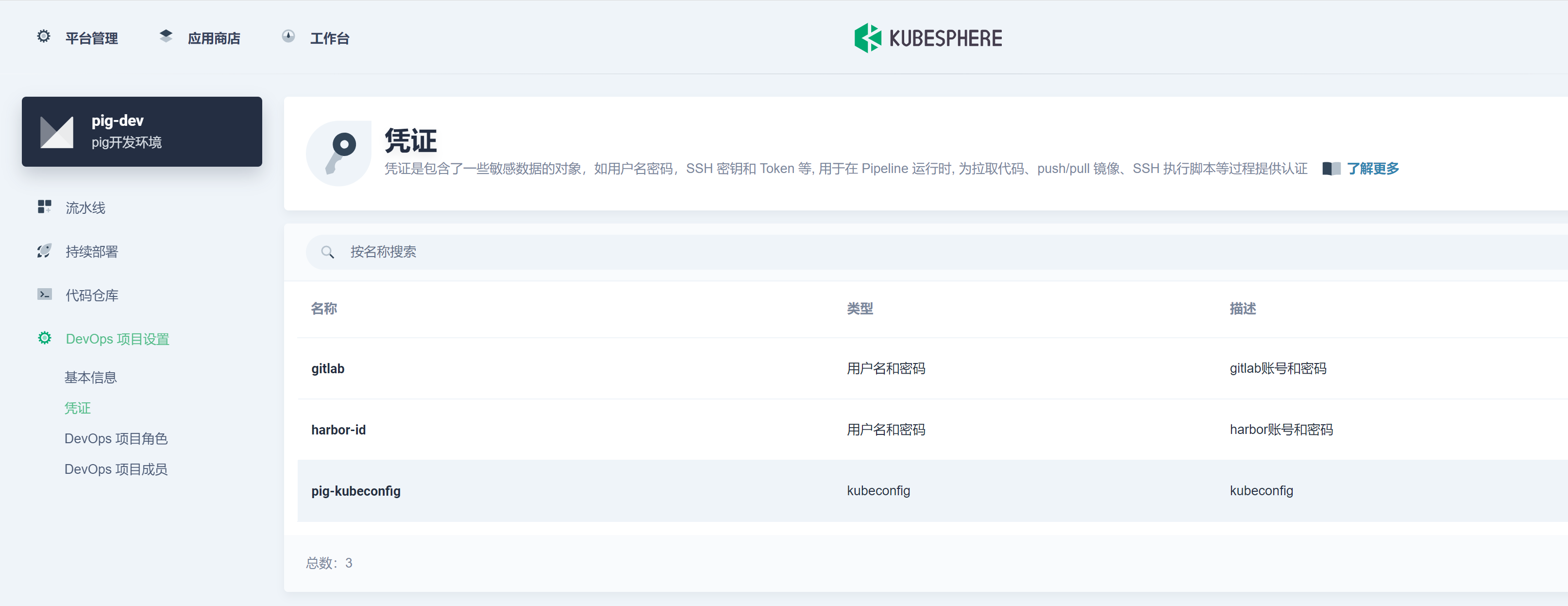 Pig 所依赖的后端微服务为无状态服务。利用 KubeSphere 服务创建 DevOps 流水线项目来部署这些微服务。