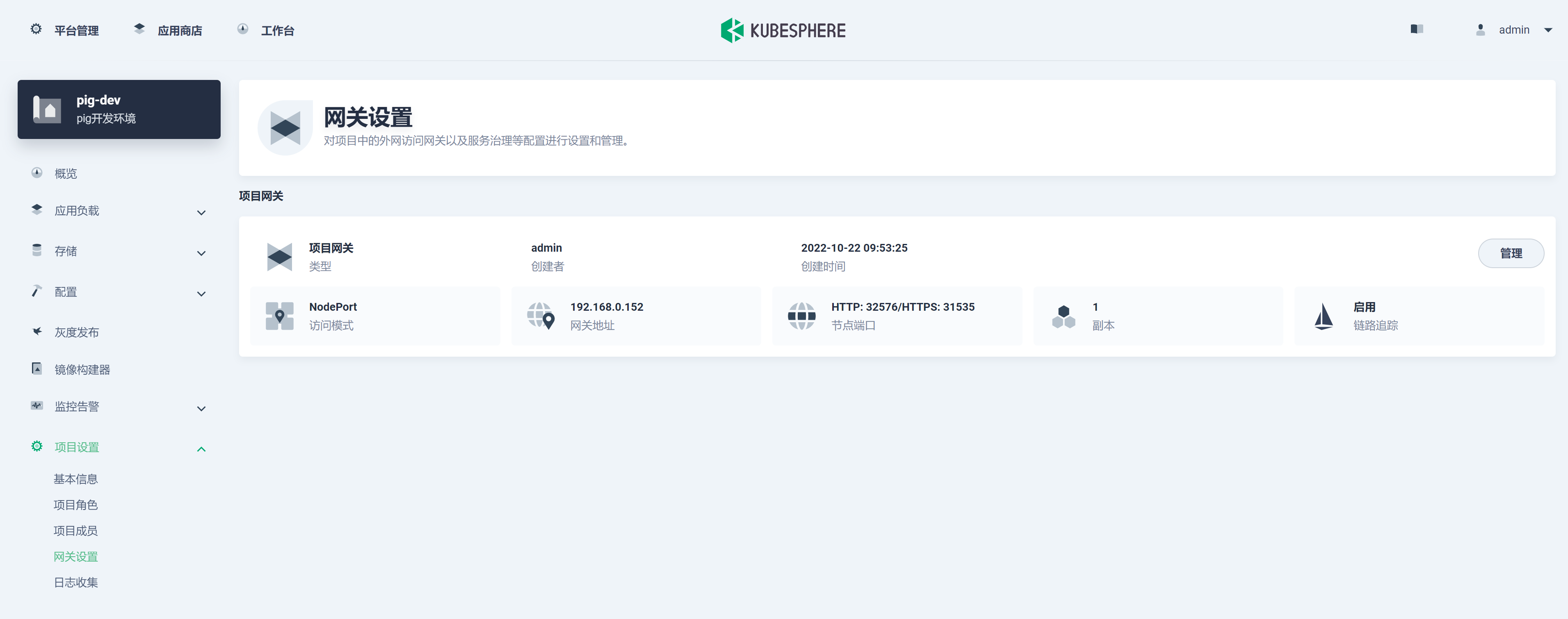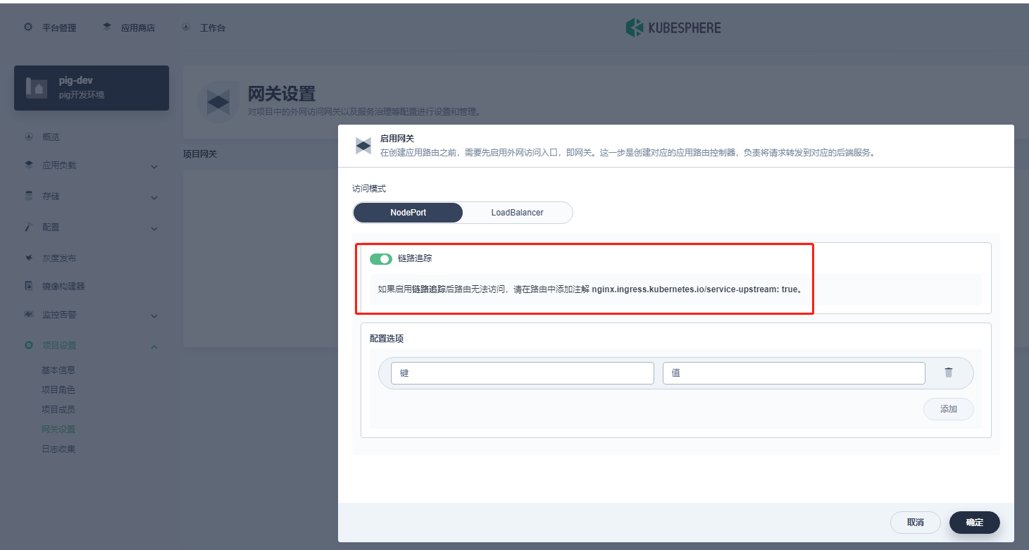 KubeSphere 中的项目网关,开启后会自动安装 IngressController。