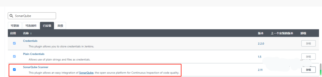 - 在 Jenkins 中安装 SonarQube Scanner 插件