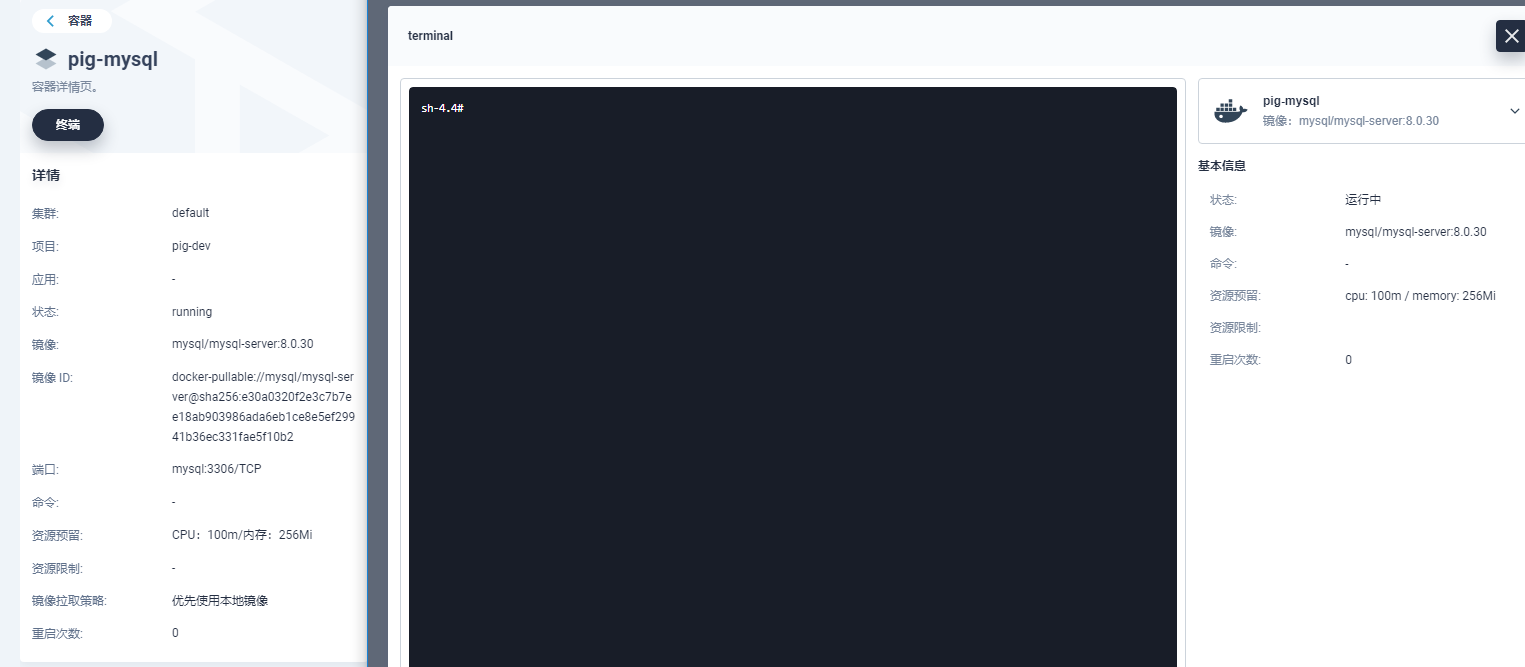 MySQL 镜像采用 pig 项目 db 下 Dockerfile 中的版本,也可自己指定。