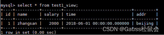 3.在openGauss侧查询视图,迁移成功。注意查询的时候需要携带schema: mysql_db1_sch,视图名称和mysql 中定义的一致,都是test1_view。