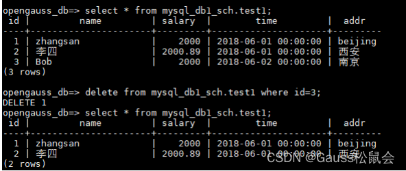 openGauss侧测试触发器 从测试结果来看,触发器是直接生效的,test2中已经成功插入了数据。