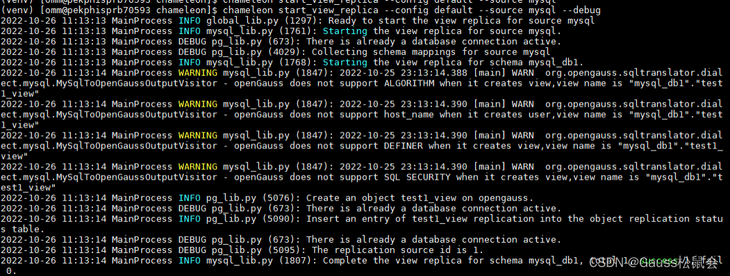 数据库对象迁移测试 初始化迁移过程 (venv) [omm@pekphisprb70593 chameleon]$ chameleon create_replica_schema --config default (venv) [omm@pekphisprb70593 chameleon]$ chameleon add_source --config default --source mysql