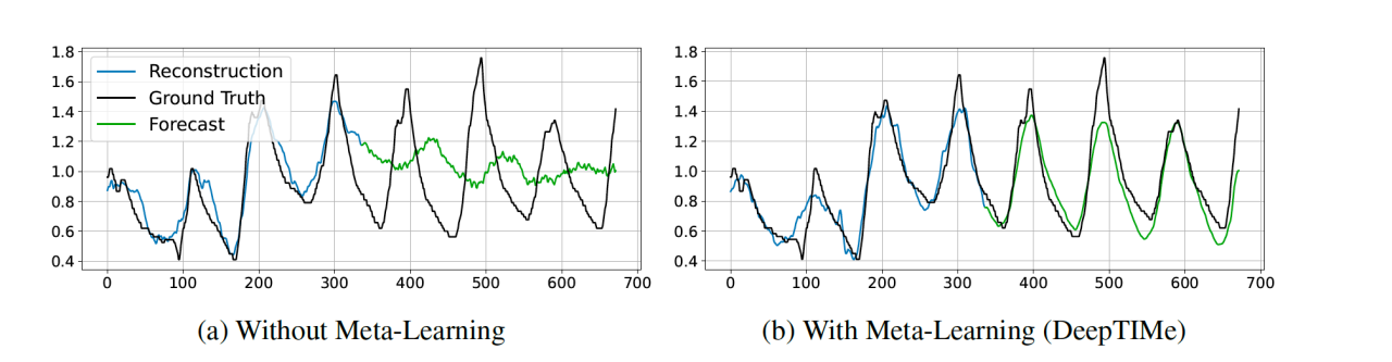 下图为未使用语言模型和使用语言学习(DeepTiMe)的对比图,可看出,使用 DeepTiMe 模型的预测效果明显高于未使用 DeepTiMe 模型的预测效果。