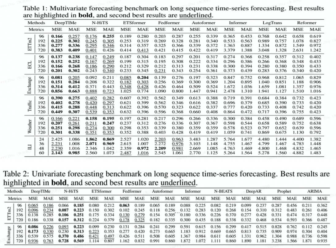 N-BEATS 与 N-BEATSx 是加拿大一家公司最先提出。N-HiTS 是在 N-BEATS 的基础上做了一些改进。FEDformer 是由阿里达摩院发表一个基于傅立叶变换和小波变换用于深度模型做提取特征工作的模型。DeepTiMe 是利用元学习的思想,在非常简单的神经网络上结合随机傅立叶特征即可取得很好的预测效果。