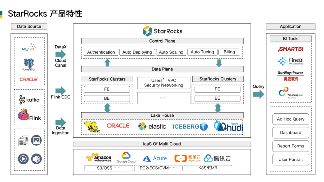 回过头来再从架构上看 StarRocks 的产品特性。在大数据生态下,StarRocks 具备比较强大的能力:
