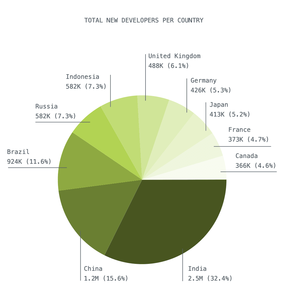 - GitHub 今年新增了 2050 万开发者,其印度的开发者人数增长最快。