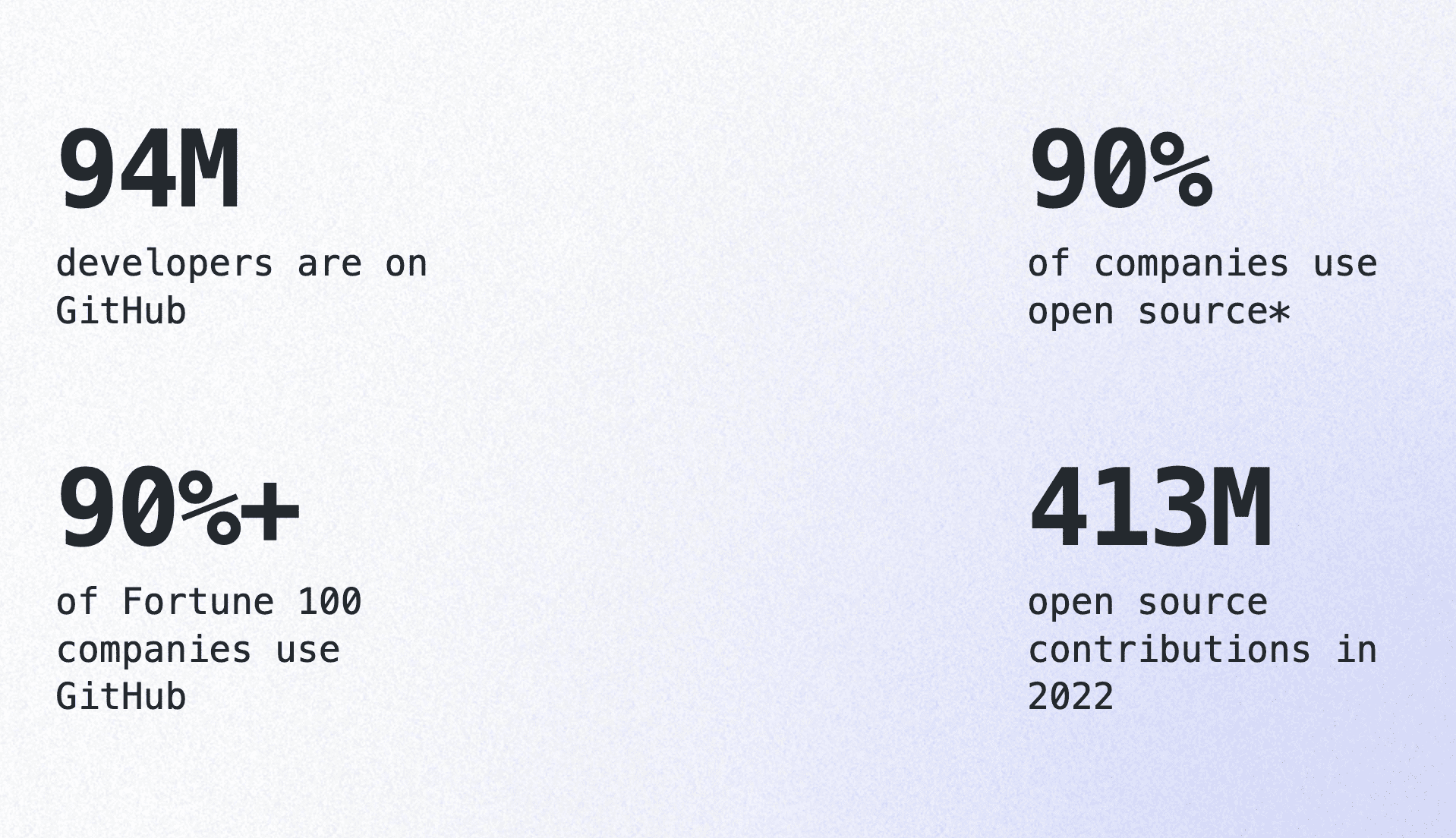 - 财富 100 强公司的 90% 以上都使用 GitHub