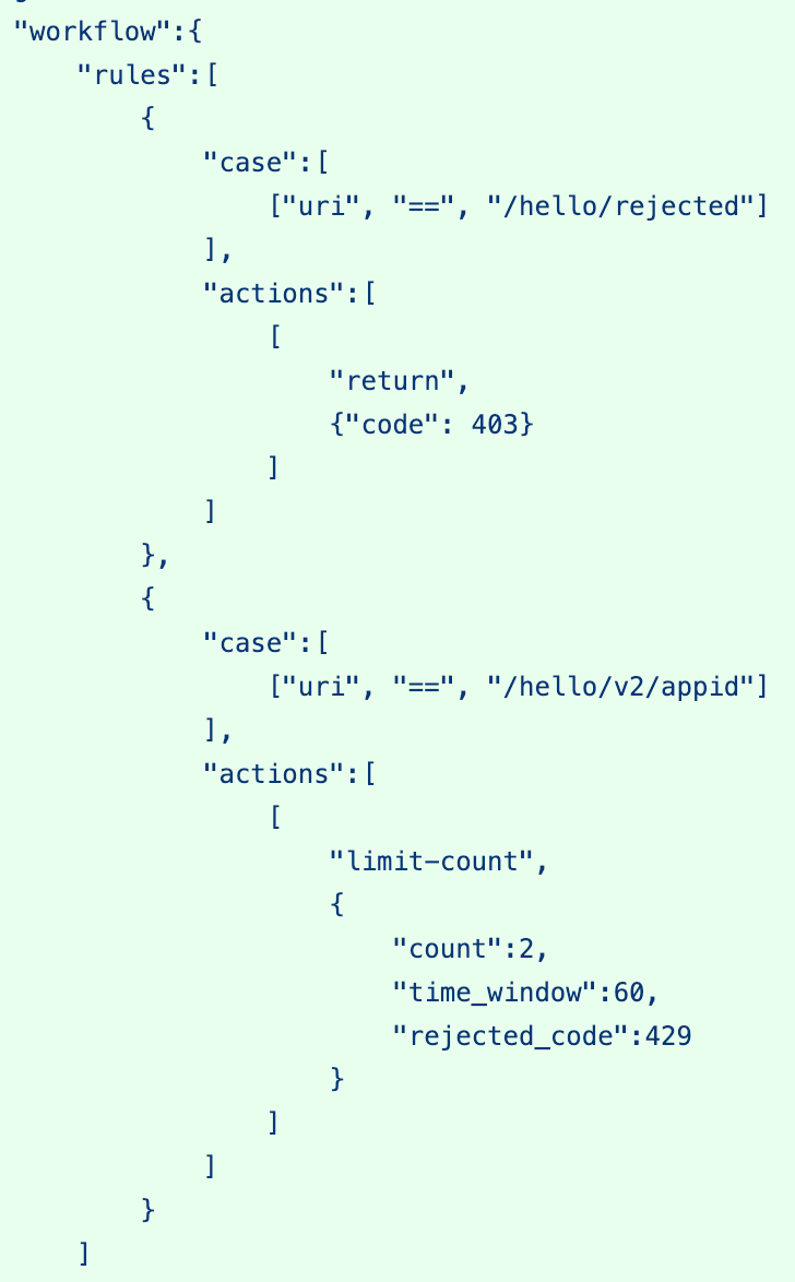 其中一个有趣的插件 workflow 是关于流量调度的, 通过该插件就可以在流量控制层面进行一些更细粒度的处理。
